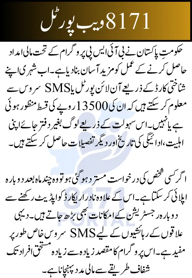 The 13500 rupee payment is a much-needed relief for thousands of families across Pakistan. Now, with the online system, tracking your disbursement status is faster and more accurate. Simply go to the 8171 portal and: