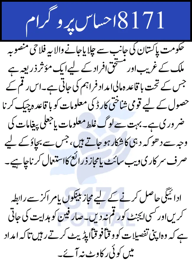 The 8171 Ehsaas Program continues to be a critical source of financial support for millions of families across Pakistan. However, to benefit fully and safely, beneficiaries must take responsibility for verifying their registration, staying updated through official platforms, and protecting themselves from rising scam tactics.