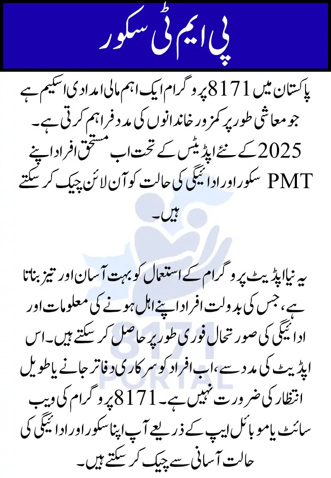 The 8171 New Update 2025 brings significant changes to Pakistan’s financial assistance program, making it easier than ever for beneficiaries to check their PMT (Poverty Monitoring Tool) score and payment status online. Over the years, the 8171 program has been a lifeline for millions of low-income families in Pakistan, providing them with much-needed financial support. With this new update, the process of monitoring eligibility and payments is faster, more efficient, and accessible from anywhere.