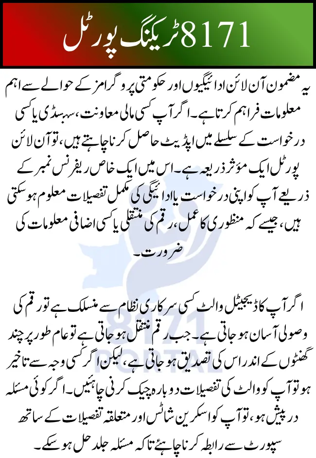 8171 Tracking Portal Status Check Online and Get Payment via Digital Wallet