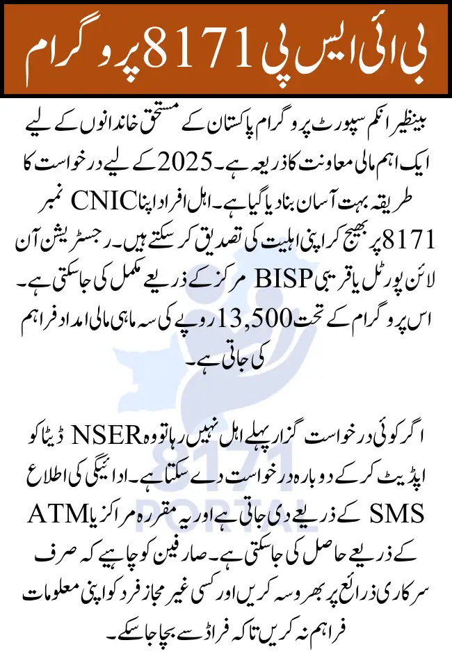 For More Info: BISP 8171 Payment Verification 2025 – Check Eligibility