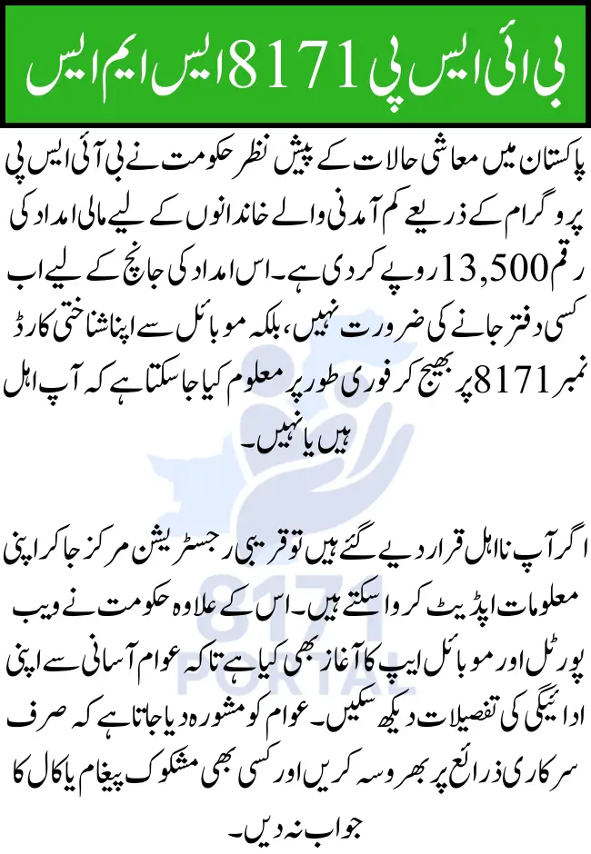 BISP 8171 SMS Service 2025 Instant Eligibility Check for Rs. 13,500 Payment