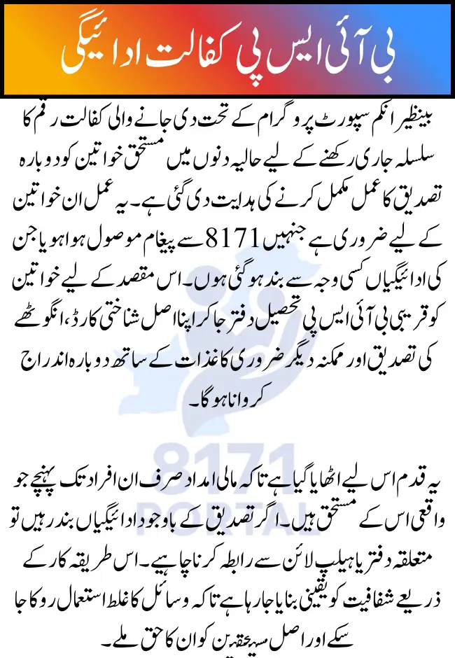 | Support Channels | BISP helpline (0800-26477) or local Tehsil office |