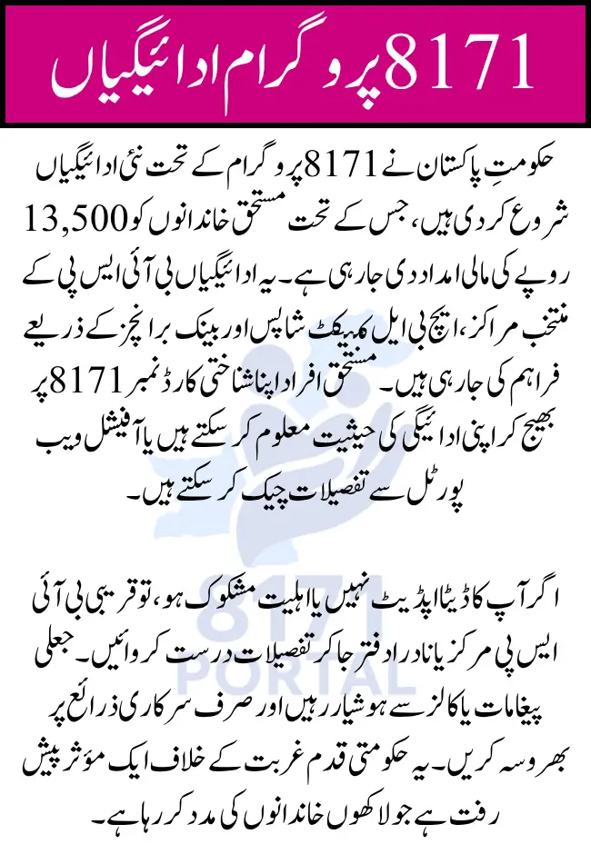 Alternatively, you can visit the official 8171 web portal where you can enter your CNIC and view your payment status online. This method is especially useful for those with internet access who prefer checking through mobile or desktop browsers.