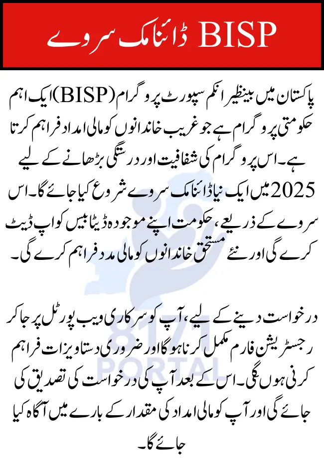 The BISP Dynamic Survey 2025 is a valuable step towards improving the Benazir Income Support Program by ensuring that assistance reaches the families who need it most. By following the outlined registration process and ensuring your documents are accurate, you can easily apply for the program and update your information if needed. The updated survey system promises to enhance the efficiency, transparency, and fairness of the program, making sure that more families benefit from the support they need.
