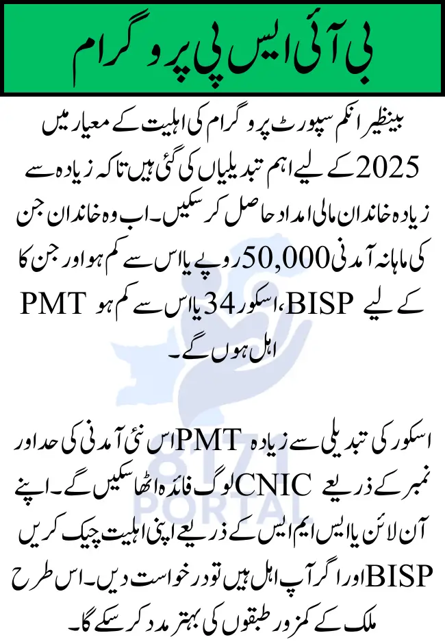 The revised BISP eligibility criteria for 2025 reflect a thoughtful response to Pakistan’s evolving economic challenges. With the income limit raised to Rs. 50,000 and the PMT score threshold set at 34, many more families now have access to crucial financial assistance. Checking your eligibility through the easy online or SMS-based PMT score system can help you determine your status quickly. If eligible, make sure to submit your application with complete and accurate documentation to benefit from this vital social safety net.
